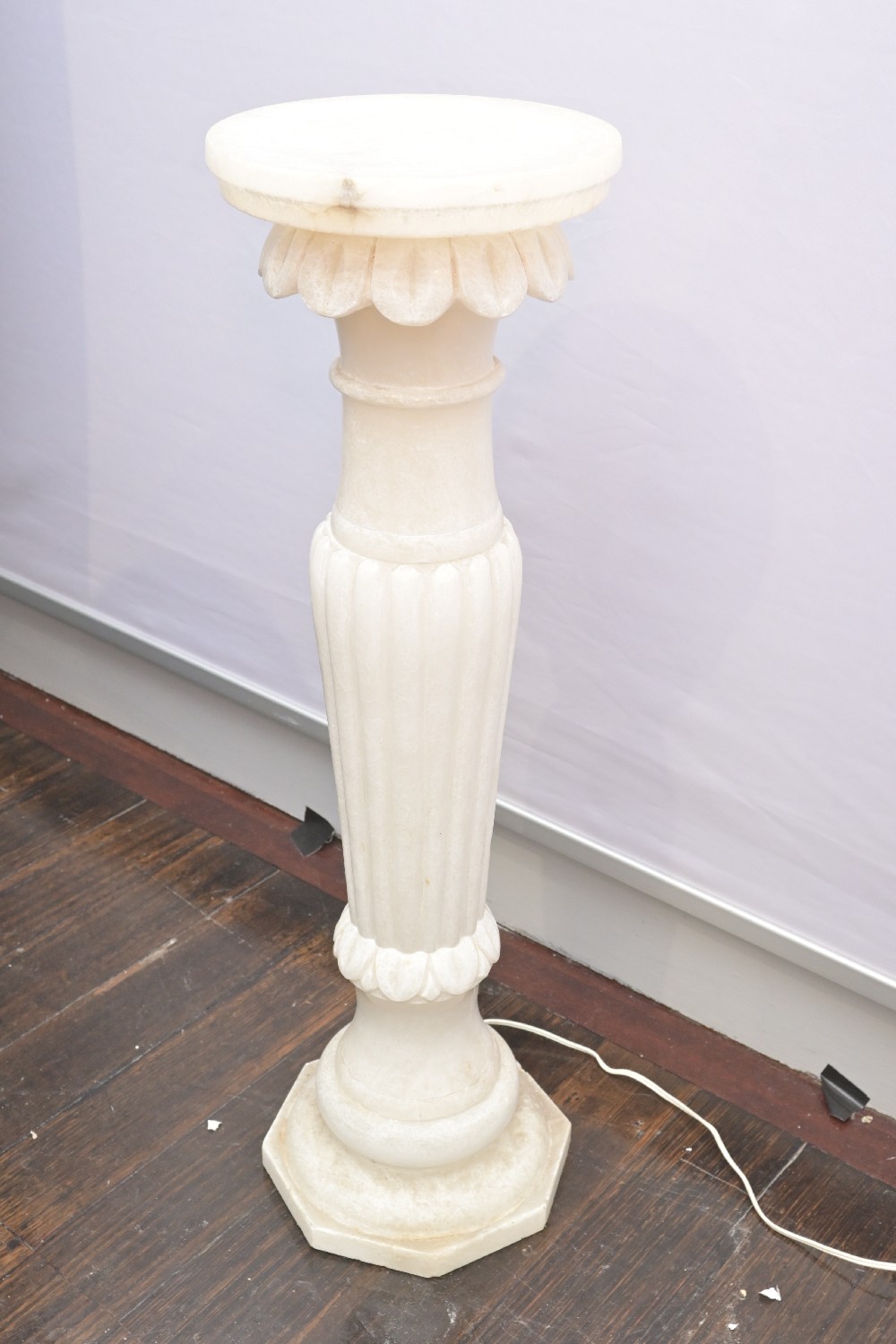 AN ILLUMNINATED ALABASTER PEDESTAL (A/F) (UNTESTED) (88H X 27DIA CM) (LEONARD JOEL DELIVERY SIZE: LARGE)