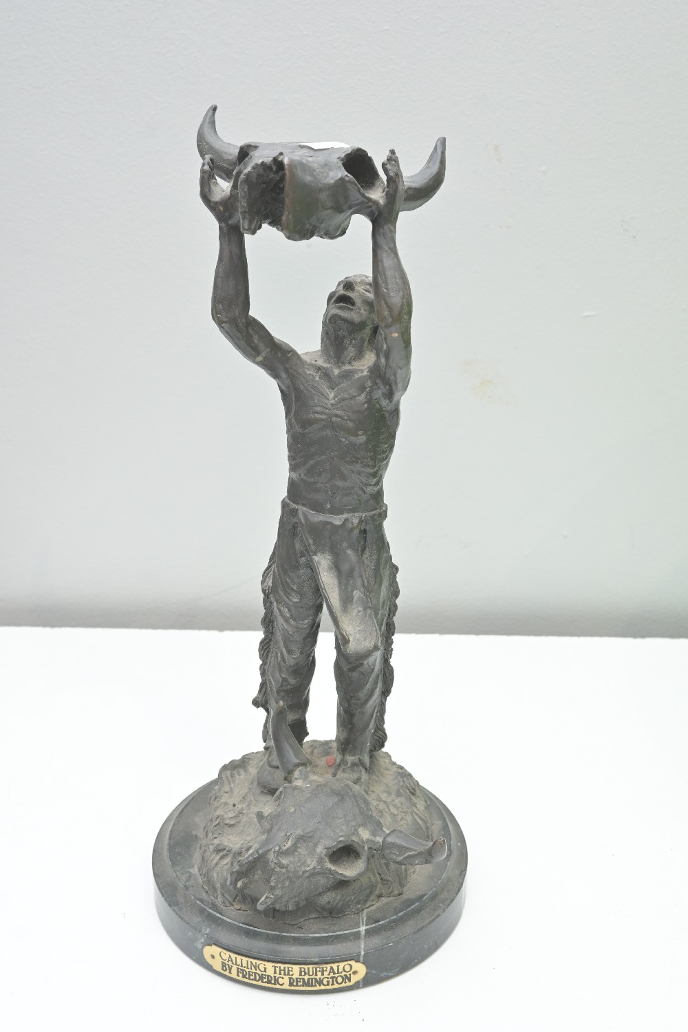 A BRONZE FIGURE, CALLING THE BUFFALO, AFTER REMINGTON (A/F) (42H CM) (LEONARD JOEL DELIVERY SIZE: MEDIUM)