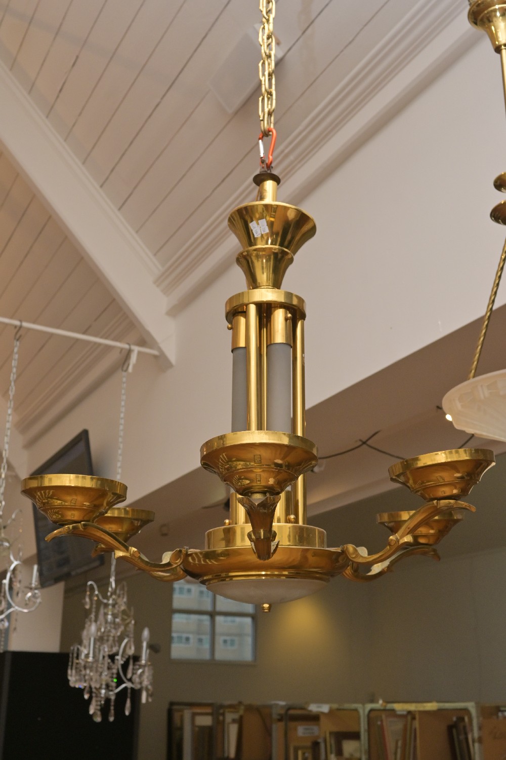 A ART DECO SIX BRANCH CEILING LIGHT (A/F) (UNTESTED) (70H X 70DIA CM) LEONARD JOEL DELIVERY SIZE: X-LARGE)