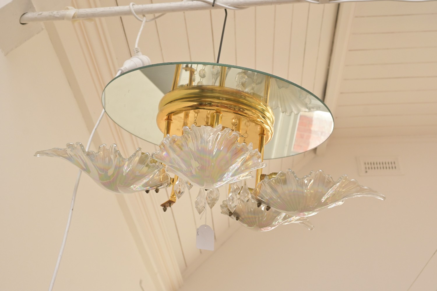 A LATE 20TH CENTURY ITALIAN IRRIDESCENT LEAF GLASS CHANDELIER (A/F - ONE LEAF BROKEN) (UNTESTED) (20H X 60 DIA CM) (PLEASE NOTE THIS HEAVY ITEM MUST BE REMOVED BY CARRIERS AT THE CUSTOMER'S EXPENSE. LEONARD JOEL STAFF CANNOT ASSIST CARRYING THIS ITEM) (X-LARGE ITEM)