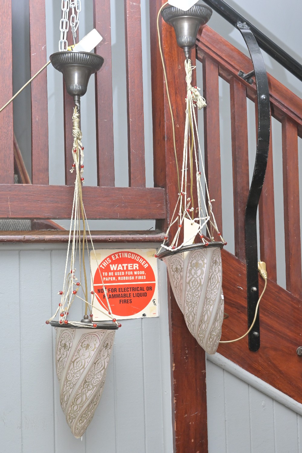 A PAIR OF FORTUNY STYLE CEILING LIGHTS (A/F) (UNTESTED) (100H X 25DIA CM) (LEONARD JOEL DELIVERY SIZE: LARGE)