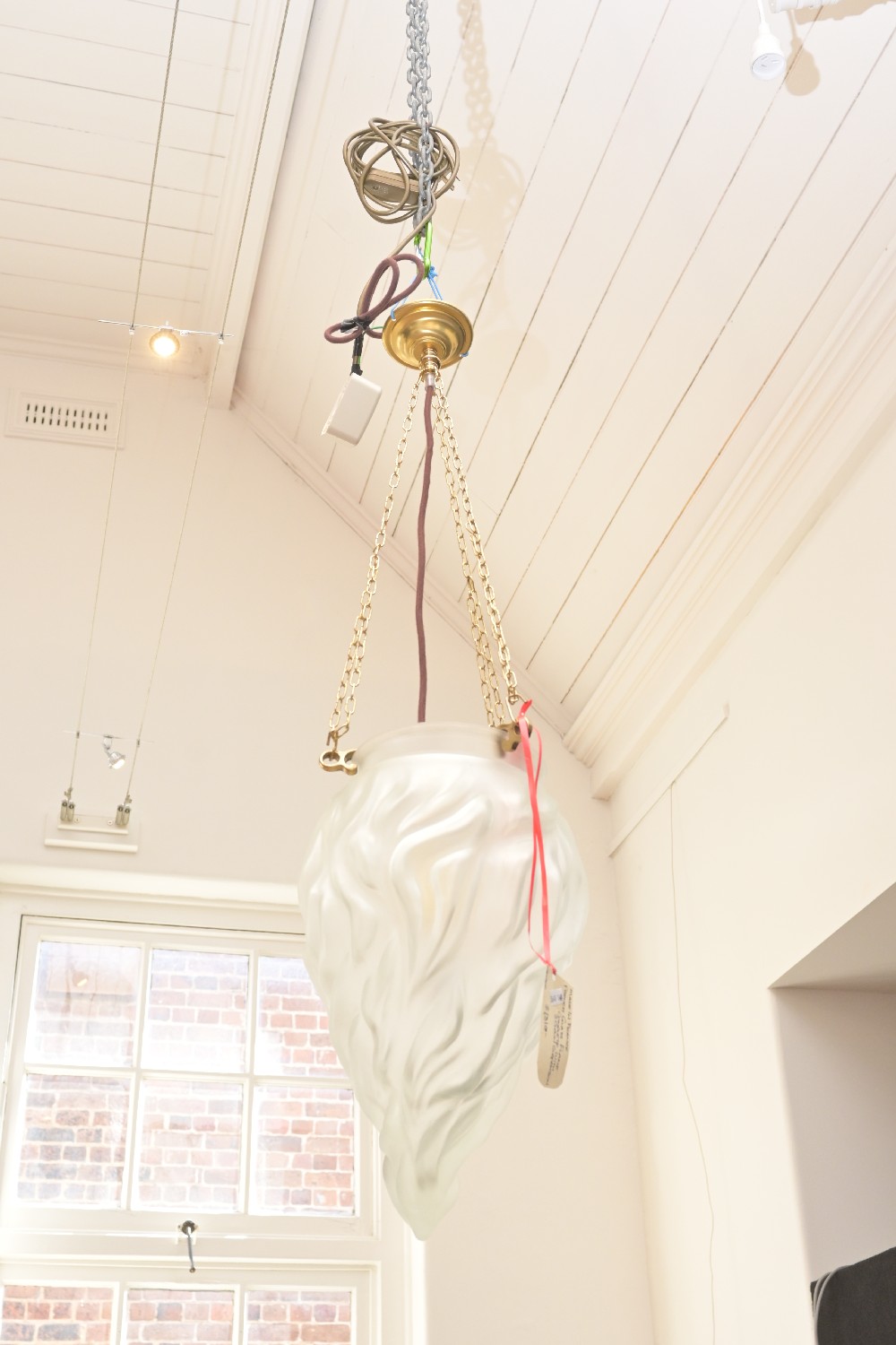 A FLAMIFORM GLASS FLOAT CEILING LIGHT (A/F) (UNTESTED) (102H X 23DIA CM) LEONARD JOEL DELIVERY SIZE: LARGE)