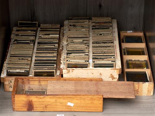 A COLLECTION OF APPROX. 240 GLASS LANTERN SLIDES MADE FOR AND USED BY WALTER S. BINKS (1892-1983) IN HIS WORK (THE OTHER HALF OF BINKS'S SLIDE COLLECTION IS HELD BY MUSEUMS VICTORIA) W.8.5CM (EACH SLIDE) LEONARD JOEL DELIVERY SIZE: LARGE