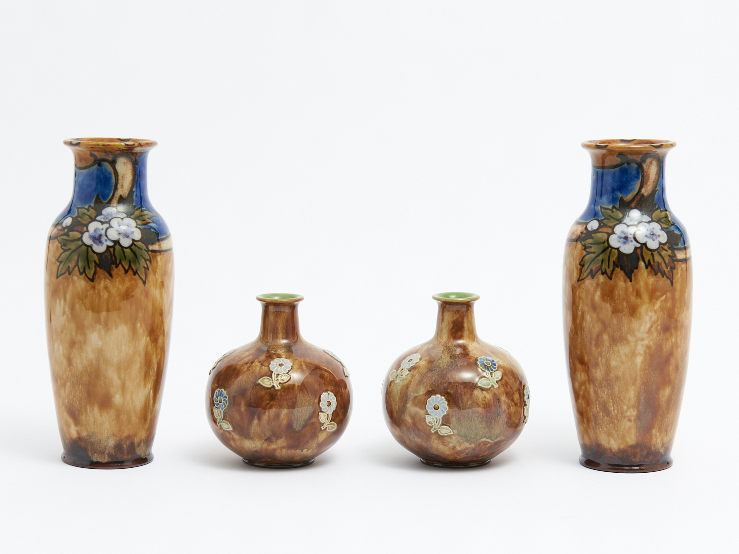TWO PAIRS OF ROYAL DOULTON STONEWARE VASES INCL. ONE PAIR FOR FLORRIE JONES H.22.5CM (TALLEST), LEONARD JOEL DELIVERY SIZE: LARGE