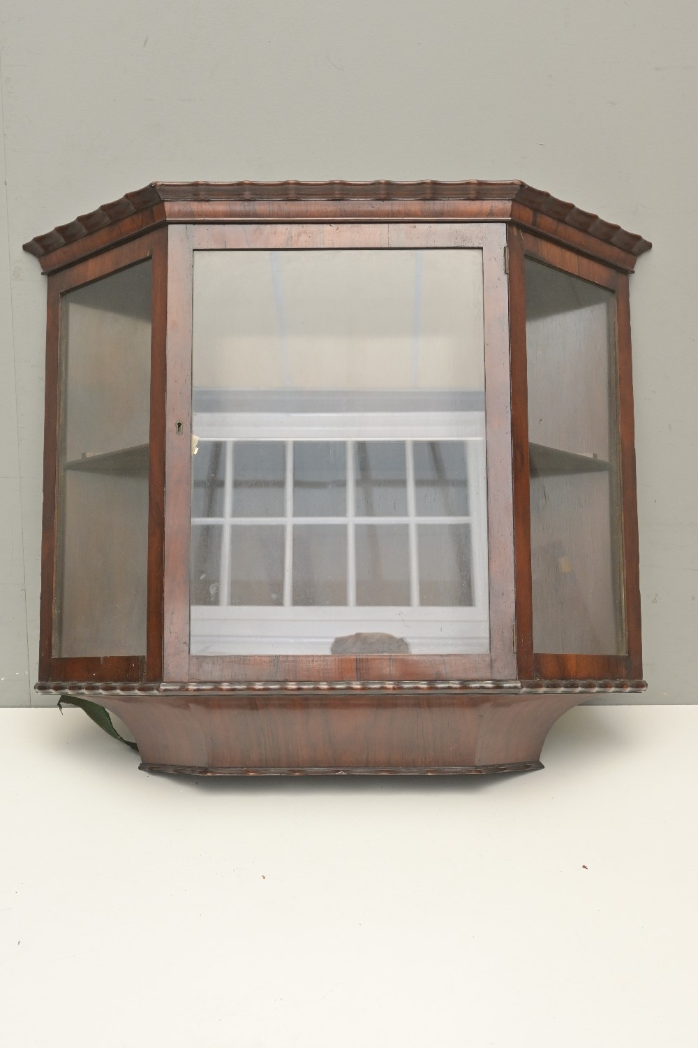 A ROSEWOOD AND GLAZED HANGING CABINET (A/F) (73H X 86W X 23D CM) (LEONARD JOEL DELIVERY SIZE: LARGE)