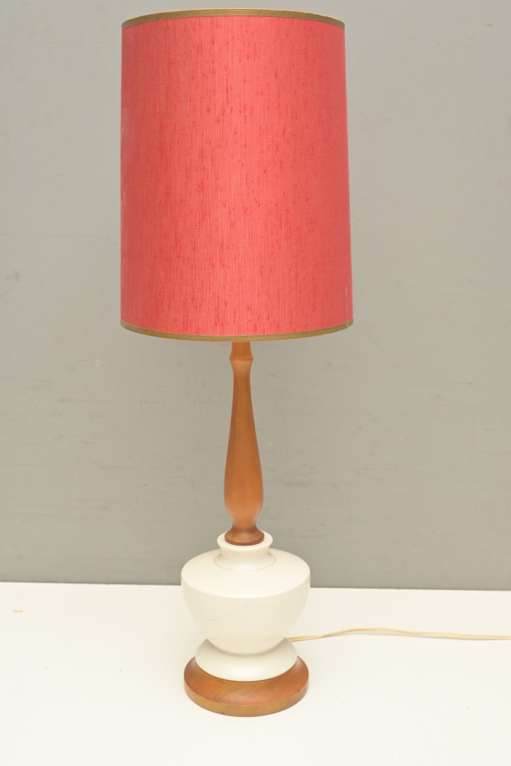 A TEAK AND CERAMIC TABLE LAMP WITH SHADE (A/F) (75H X 26D CM) (LEONARD JOEL DELIVERY SIZE: LARGE)