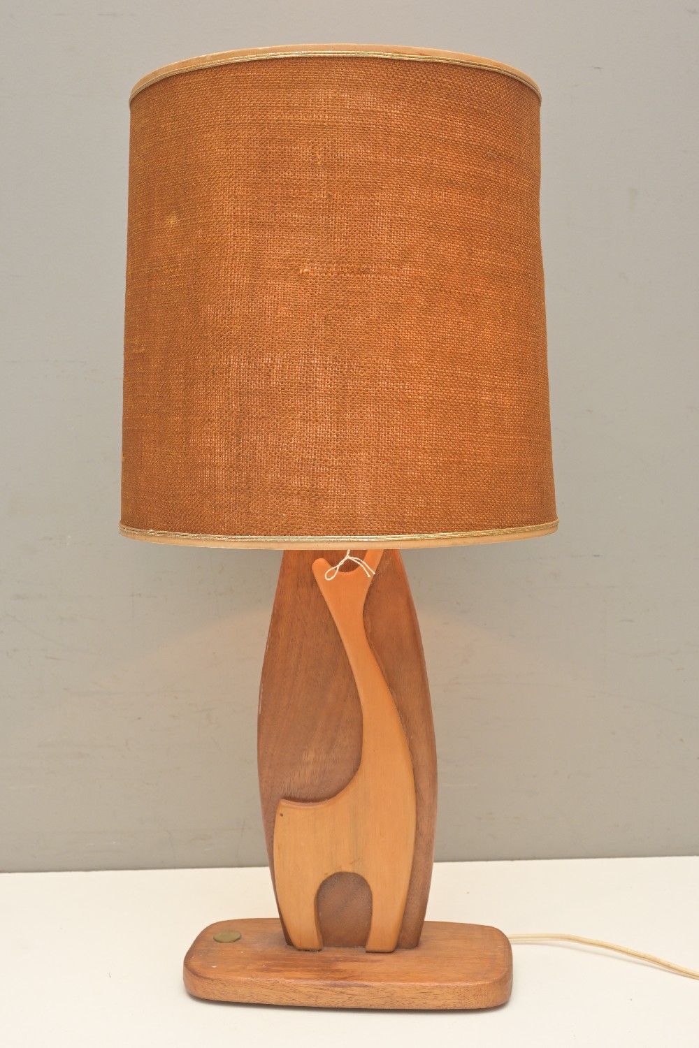 A MID-CENTURY AUSTRALIAN TEAK TABLE LAMP (A/F) (70H X 34D CM) (LEONARD JOEL DELIVERY SIZE: LARGE)