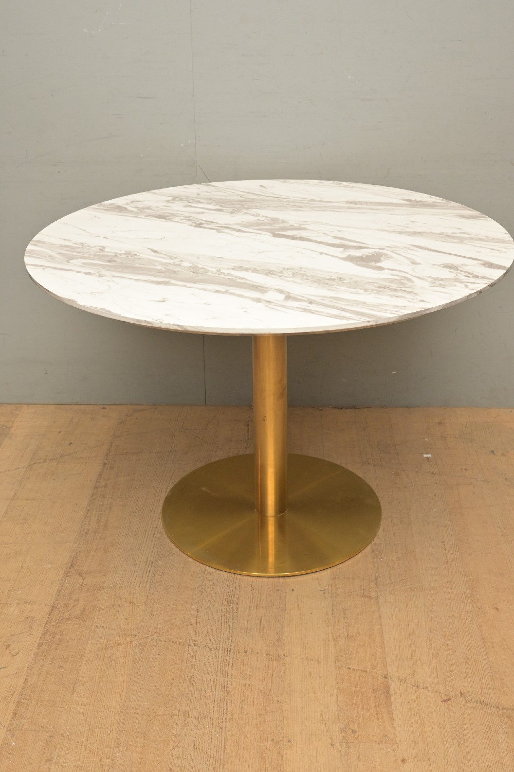 AN ART DECO STYLE DINING TABLE WITH LAMINATE TOP SIMULATING MARBLE (A/F) (76H X 110D CM) (PLEASE NOTE THIS HEAVY ITEM MUST BE REMOVED BY CARRIERS AT THE CUSTOMER'S EXPENSE. LEONARD JOEL STAFF CANNOT ASSIST CARRYING THIS ITEM) (X-LARGE ITEM)