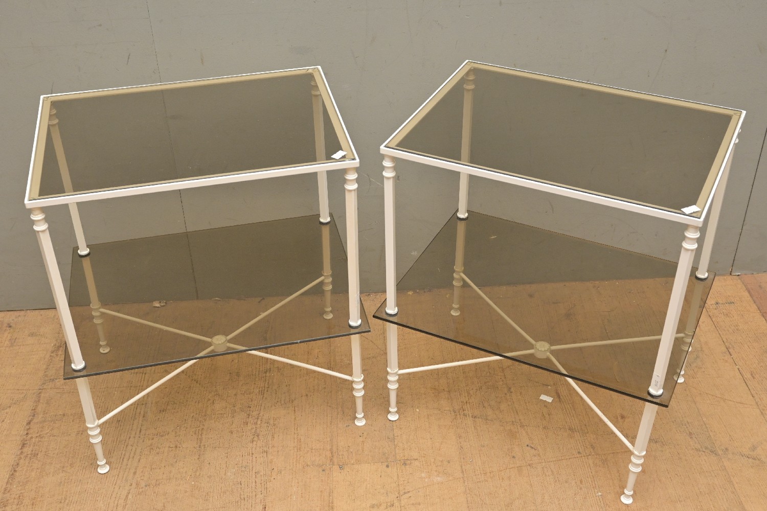 A PAIR OF FRENCH STYLE TWO TIER SIDE TABLES (54H X 45W X 33D CM) (LEONARD JOEL DELIVERY SIZE: LARGE)
