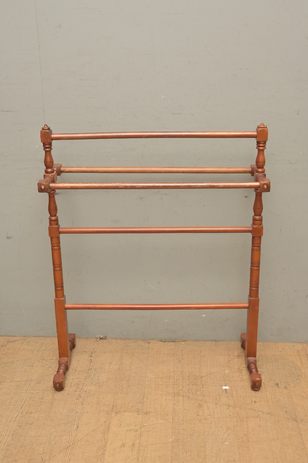 A VICTORIAN-STYLE HARDWOOD TOWEL RAIL (A/F) (95H X 76W X 25D CM) (LEONARD JOEL DELIVERY SIZE: MEDIUM)