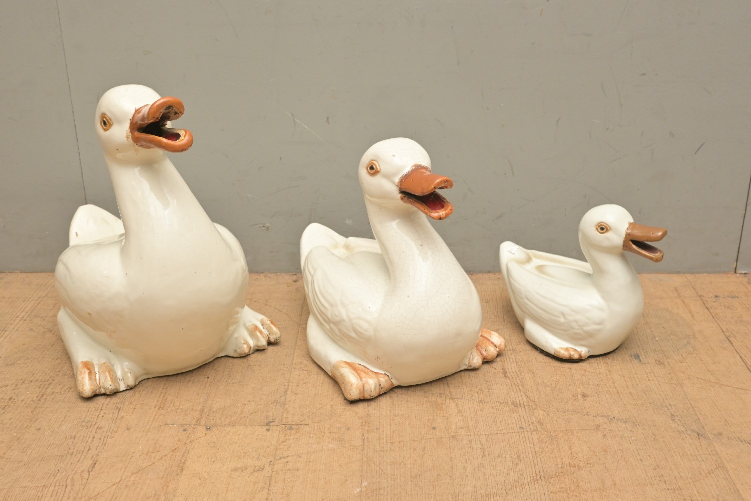 A GROUP OF THREE CERAMIC DUCK STATUES (A/F) (42H CM) (LEONARD JOEL DELIVERY SIZE: LARGE)