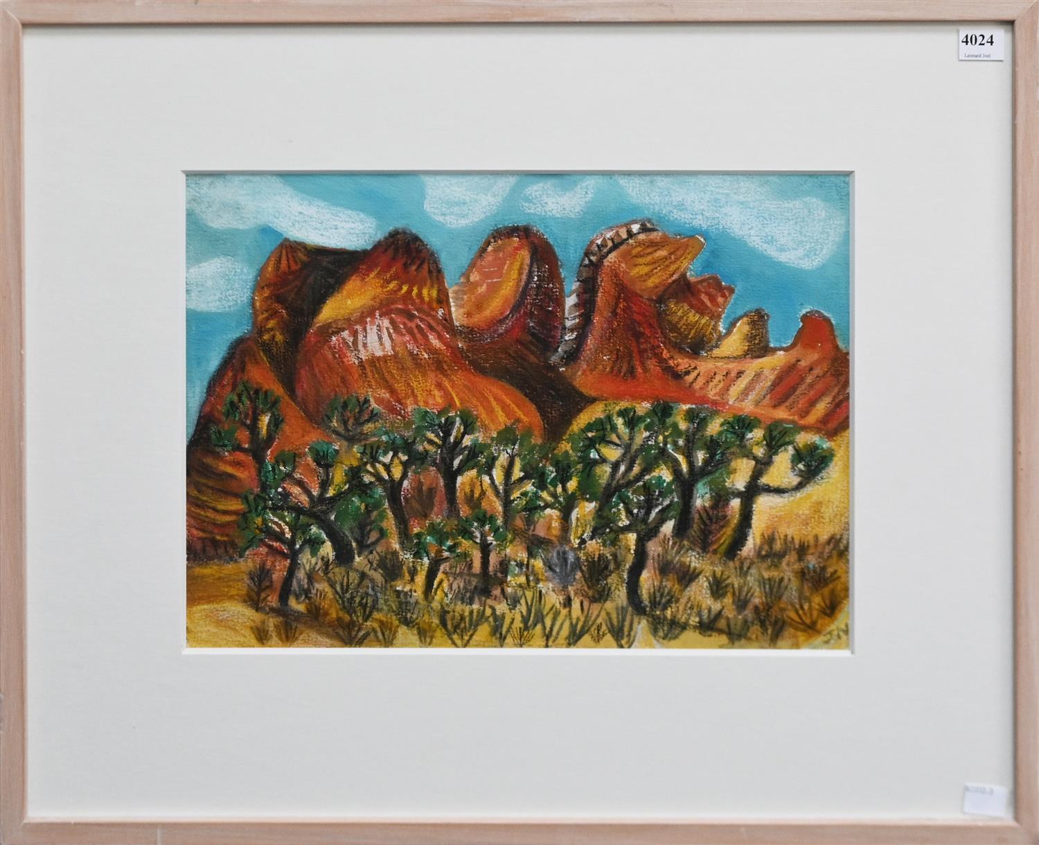 JILL NOBLE , KINGS CANYON 1991, PASTEL AND WASH ON PAPER, INITIALLED LOWER RIGHT, TITLED AND DATED ON GALLERY LABEL VERSO, 27 X 37CM, FRAME SIZE: 48 X 58CM