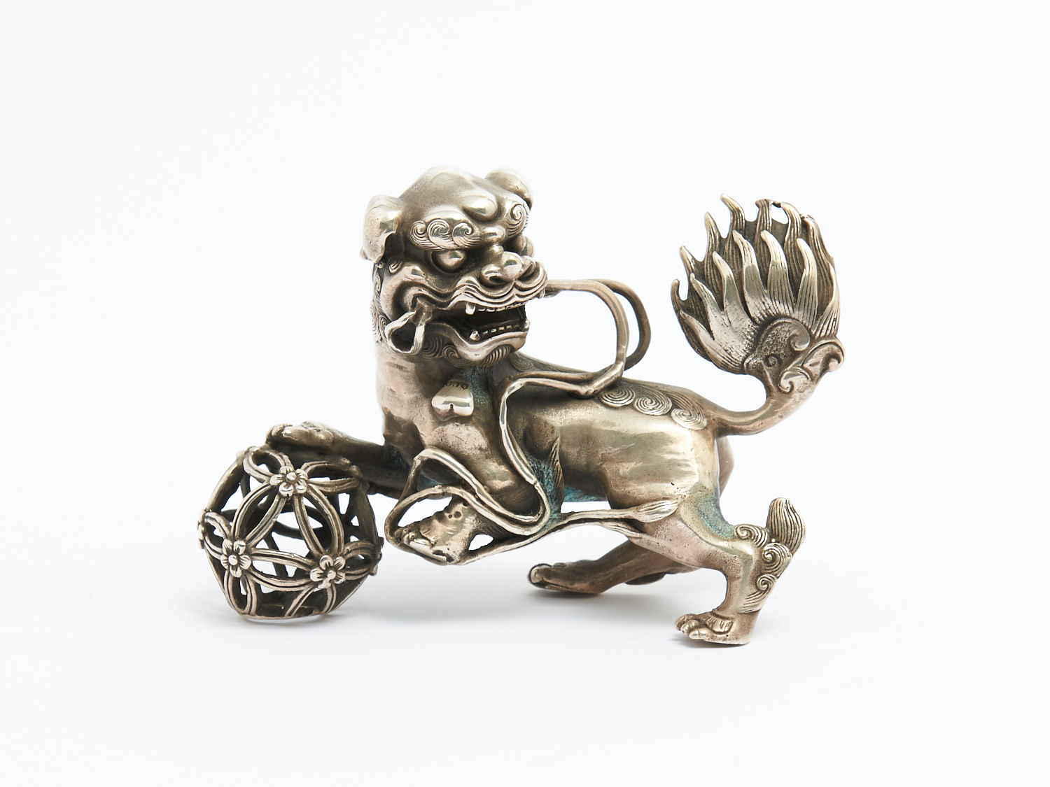 A CHINESE METAL FOO DOG FIGURE H.11CM, LEONARD JOEL DELIVERY SIZE: SMALL