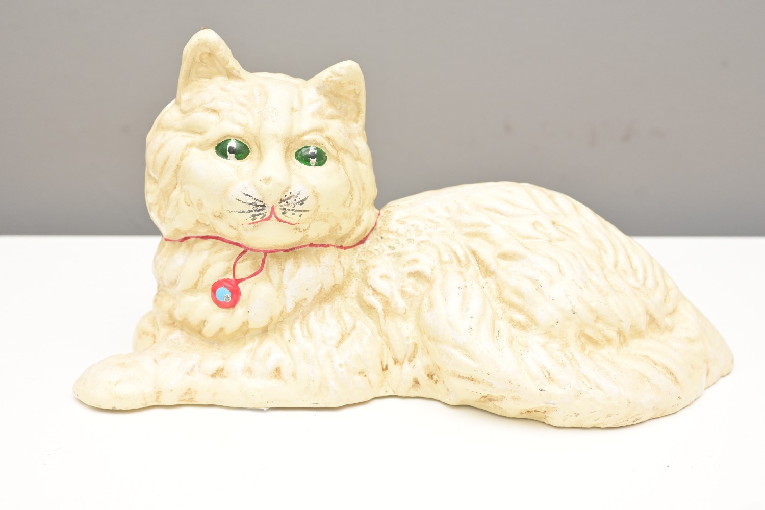 A CAST METAL CAT STATUE (14H X 26W CM) (LEONARD JOEL DELIVERY SIZE: MEDIUM)