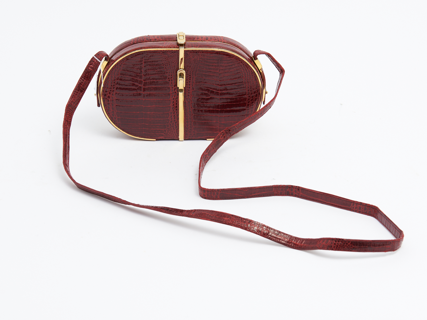 A VINTAGE CROCODILE LEATHER CROSS BODY BAG W.21CM, LEONARD JOEL DELIVERY SIZE: SMALL
