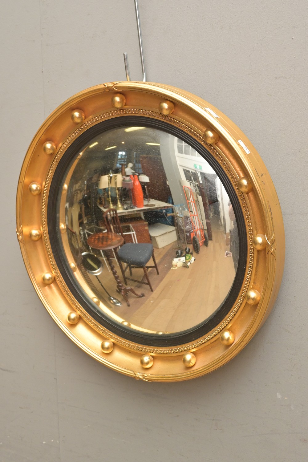 A REGENCY-STYLE GILT-FRAMED CONVEX MIRROR (47D CM) (LEONARD JOEL DELIVERY SIZE: LARGE)