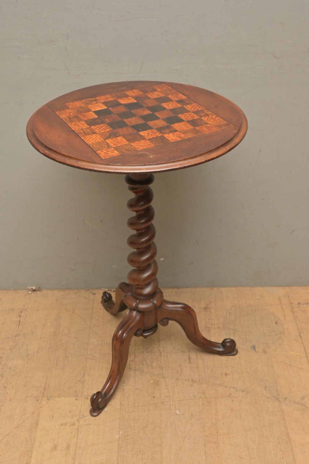 A CHESS TABLE WITH BARLEY TWIST STEM BASE (A/F) (75H X 49D CM) (LEONARD JOEL DELIVERY SIZE: LARGE)