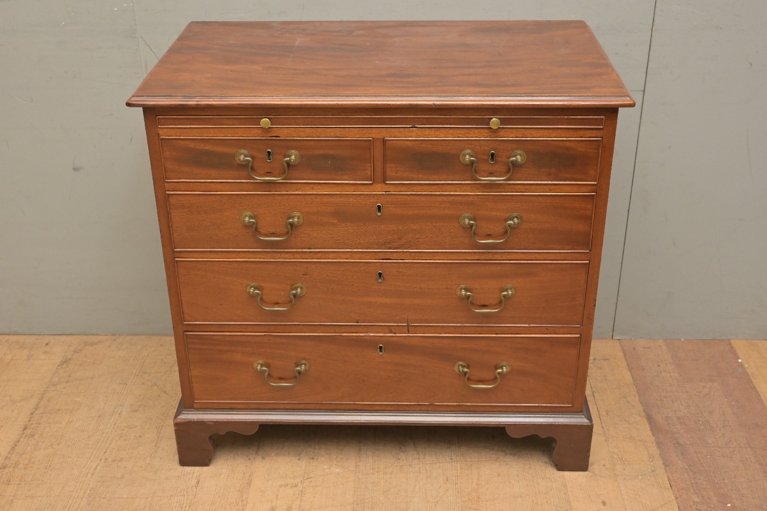 A GEORGE III MAHOGANY CHEST OF DRAWERS (KEY IN OFFICE) (A/F) (81H X 86W X 49D CM) (LEONARD JOEL DELIVERY SIZE: X-LARGE)