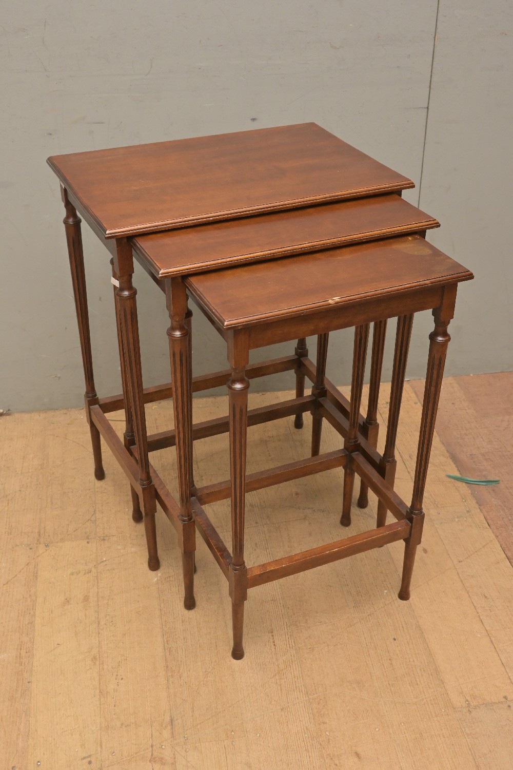 A SET OF THREE NESTING TABLES (A/F) (LARGEST 68H X 51W X 35D CM) (LEONARD JOEL DELIVERY SIZE: LARGE)