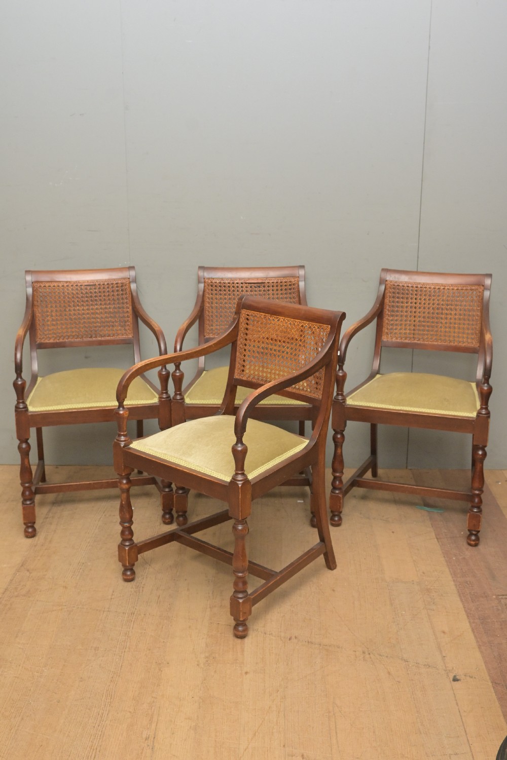 A SET OF FOUR ANTIQUE-STYLE ELBOW CHAIRS WITH CANED BACKS (A/F) (83H X 52W X 56D CM) (LEONARD JOEL DELIVERY SIZE: X-LARGE)