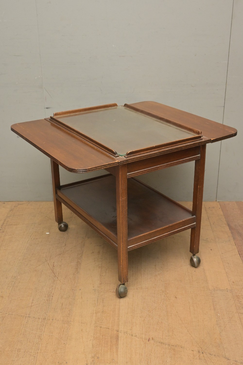 A DROP SIDE AUTO TROLLEY WITH GLASS TOP (A/F) (73H X 91W X 76D CM) (LEONARD JOEL DELIVERY SIZE: X-LARGE)