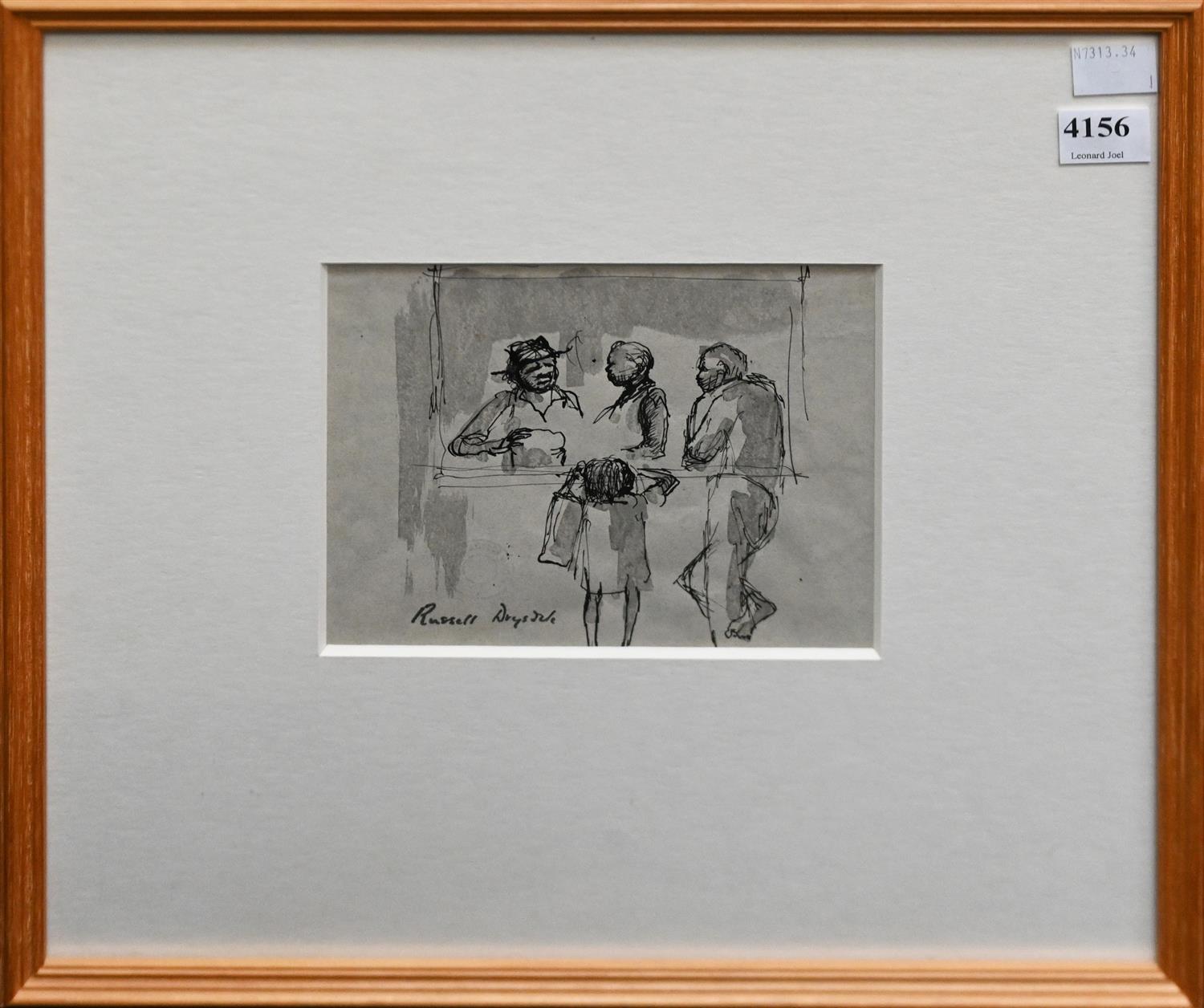 RUSSELL DRYSDALE, UNTITLED, PEN AND WASH ON PAPER, SIGNED LOWER LEFT, 12.5 X 15CM, FRAME SIZE: 32.5 X 33CM