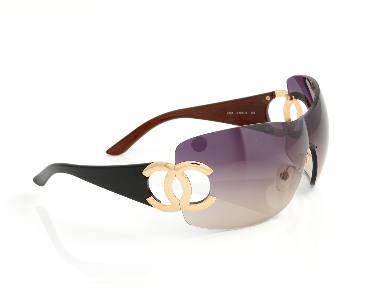 CHANEL, PAIR OF VINTAGE SHIELD SUNGLASSES FEATURING GOLD TONE CC TEMPLE ACCENT, ACCOMPANIED BY ORIGINAL CASE