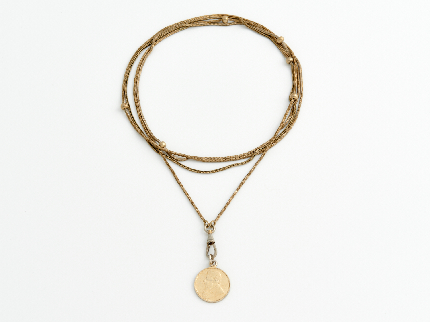 AN ANTIQUE FRENCH GUARD CHAIN AND PENDANT IN SILVER GILT