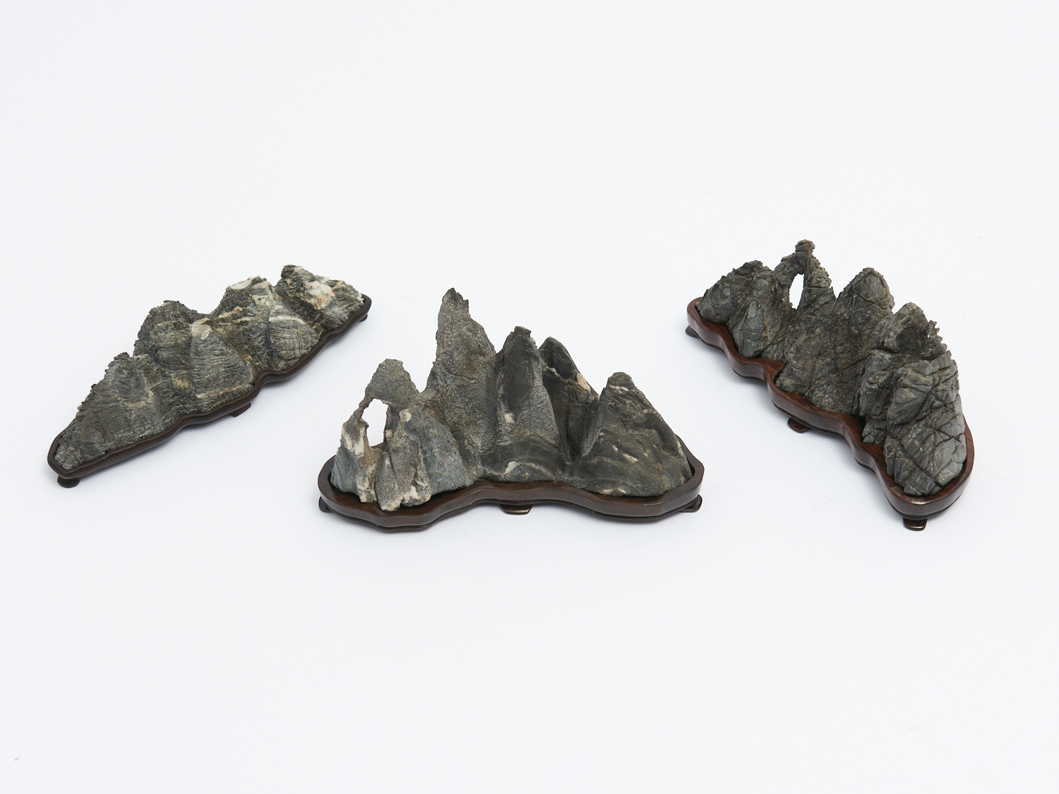 THREE SMALL CHINESE SCHOLARS ROCKS L.19CM (LONGEST), LEONARD JOEL DELIVERY SIZE: SMALL