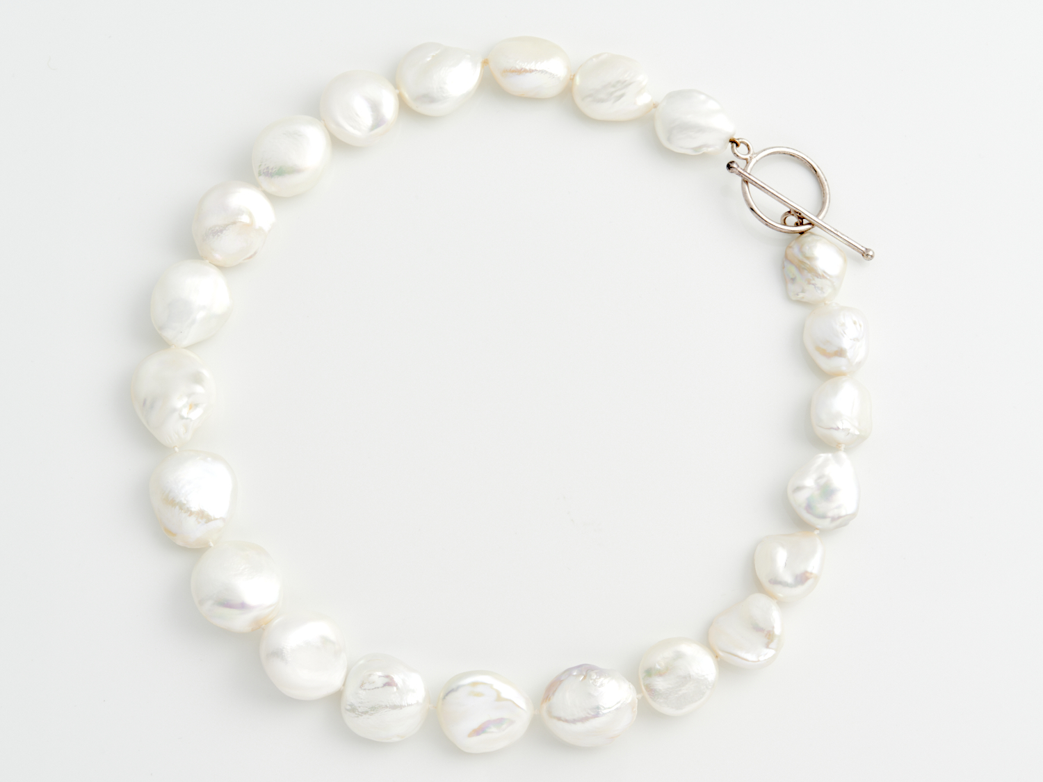 A FRESHWATER PEARL NECKLACE TO A CLASP IN BASE METAL, 500MM