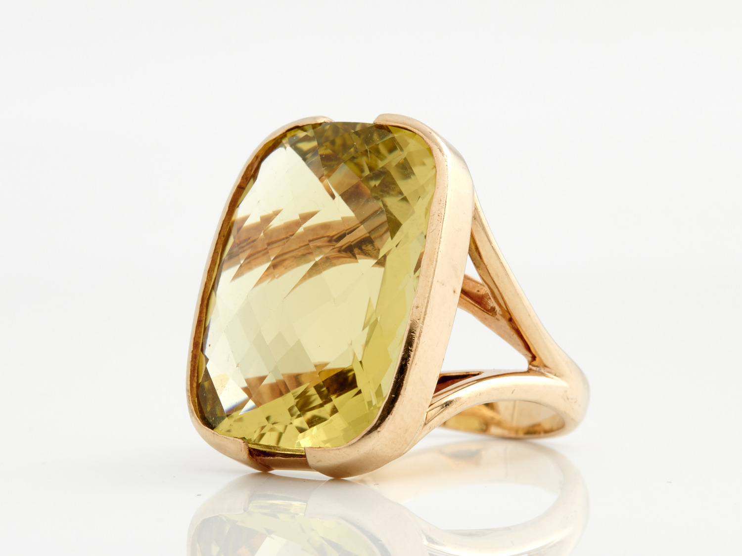 JAN LOGAN, A VINTAGE CITRINE RING IN 9CT GOLD, SIZE L, 12.1GMS