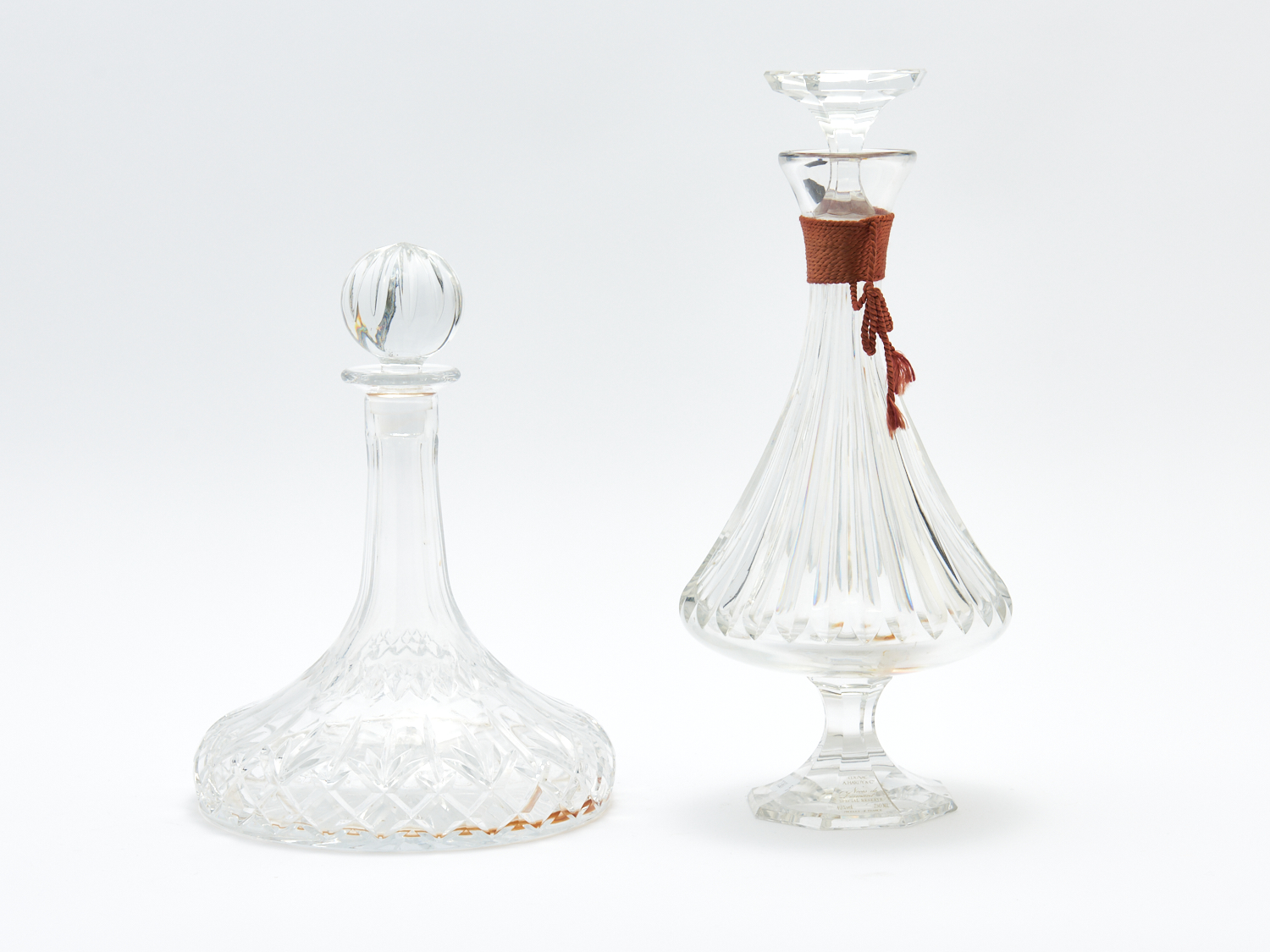 TWO CRYSTAL DECANTERS INCLUDING AN A.HARDY & CO COGNAC, AND ONE OTHER H.35CM, LEONARD JOEL DELIVERY SIZE: MEDIUM