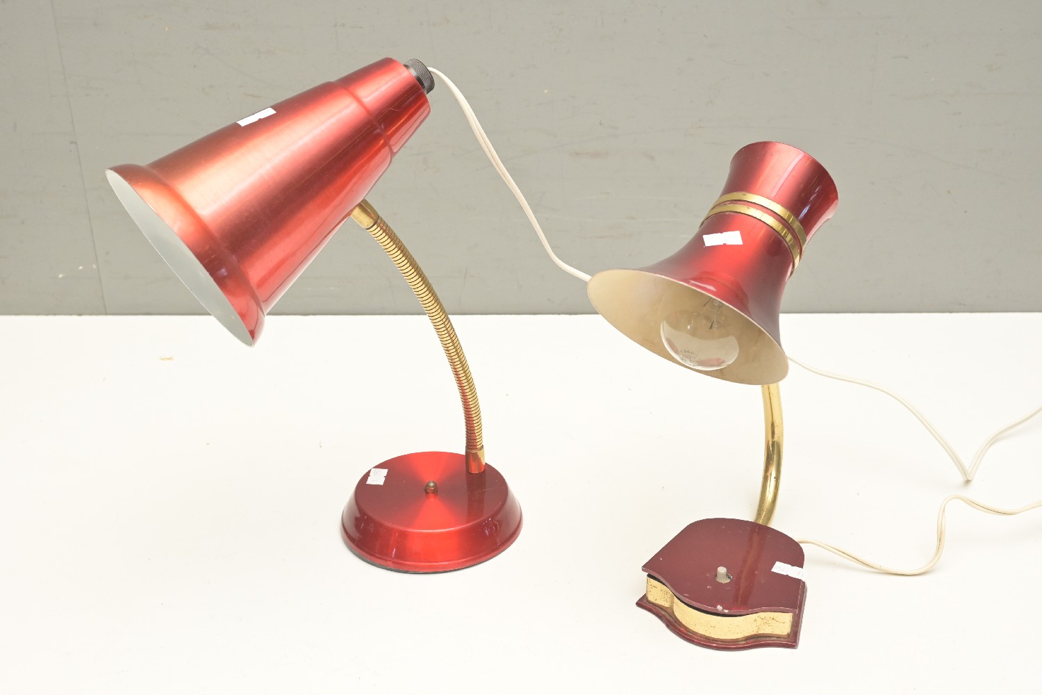 TWO RED MID-CENTURY DESK LAMPS (A/F) (THE LARGEST 34H CM) (LEONARD JOEL DELIVERY SIZE: LARGE)