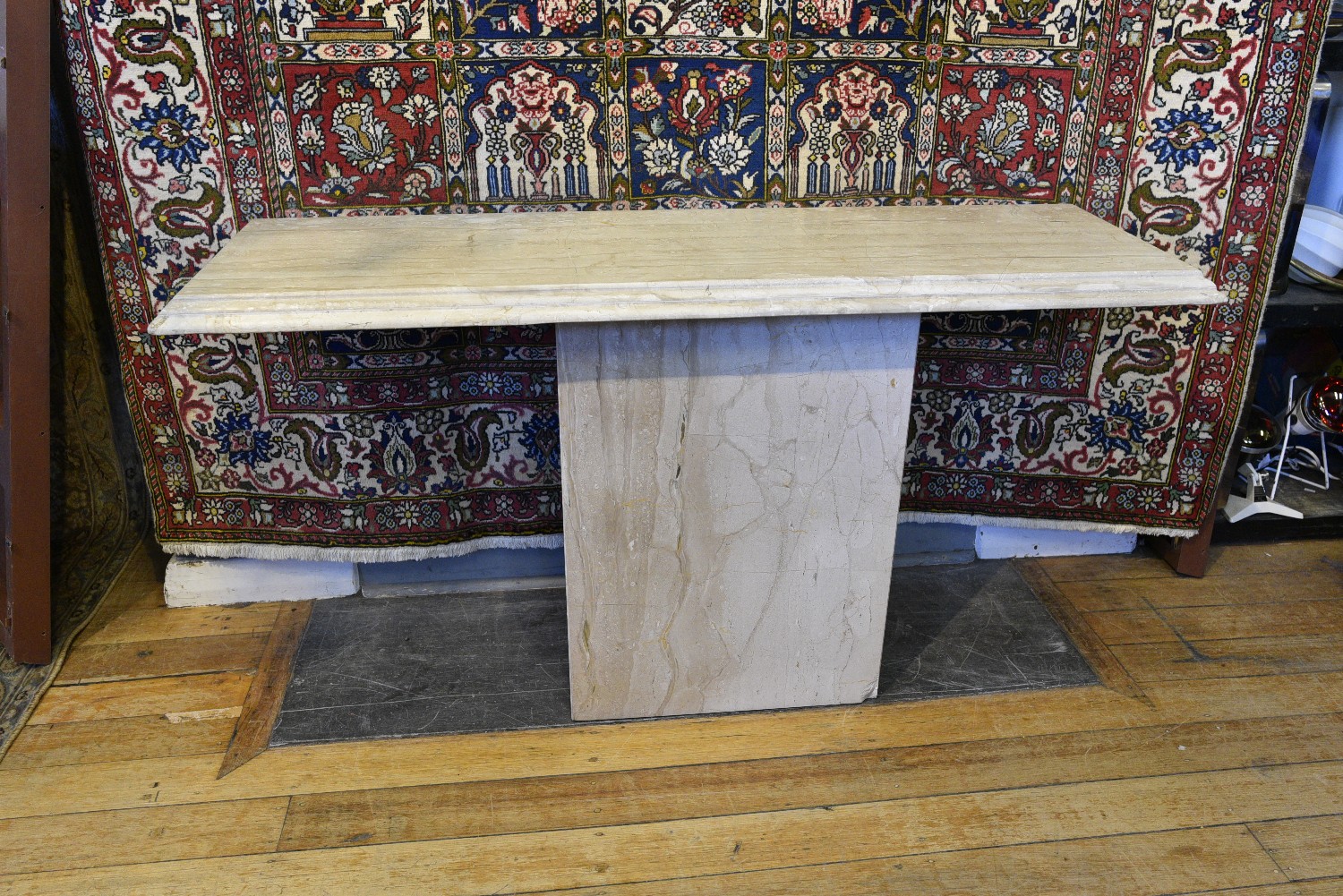 A CONTEMPORARY LIMESTONE CONSOLE TABLE (A/F) (77H X 141W X 47D CM) (THIS HEAVY ITEM MUST BE REMOVED BY CARRIERS AT THE CUSTOMER'S EXPENSE. LEONARD JOEL STAFF WILL NOT ASSIST CARRYING THIS ITEM) (HEAVY LARGE ITEM)