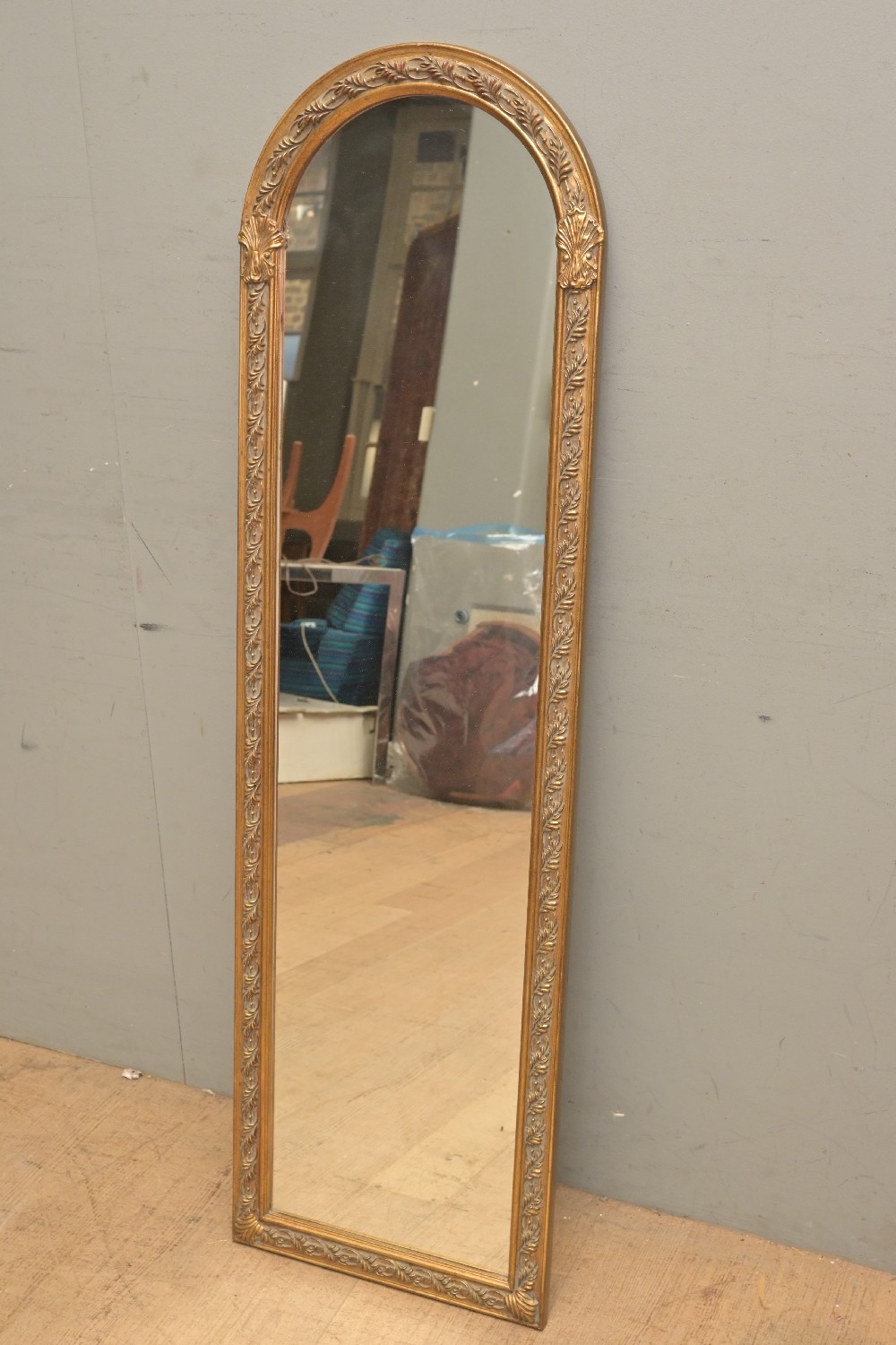 A TALL GILT-FRAMED MIRROR (130H X 38W CM) (LEONARD JOEL DELIVERY SIZE: LARGE)