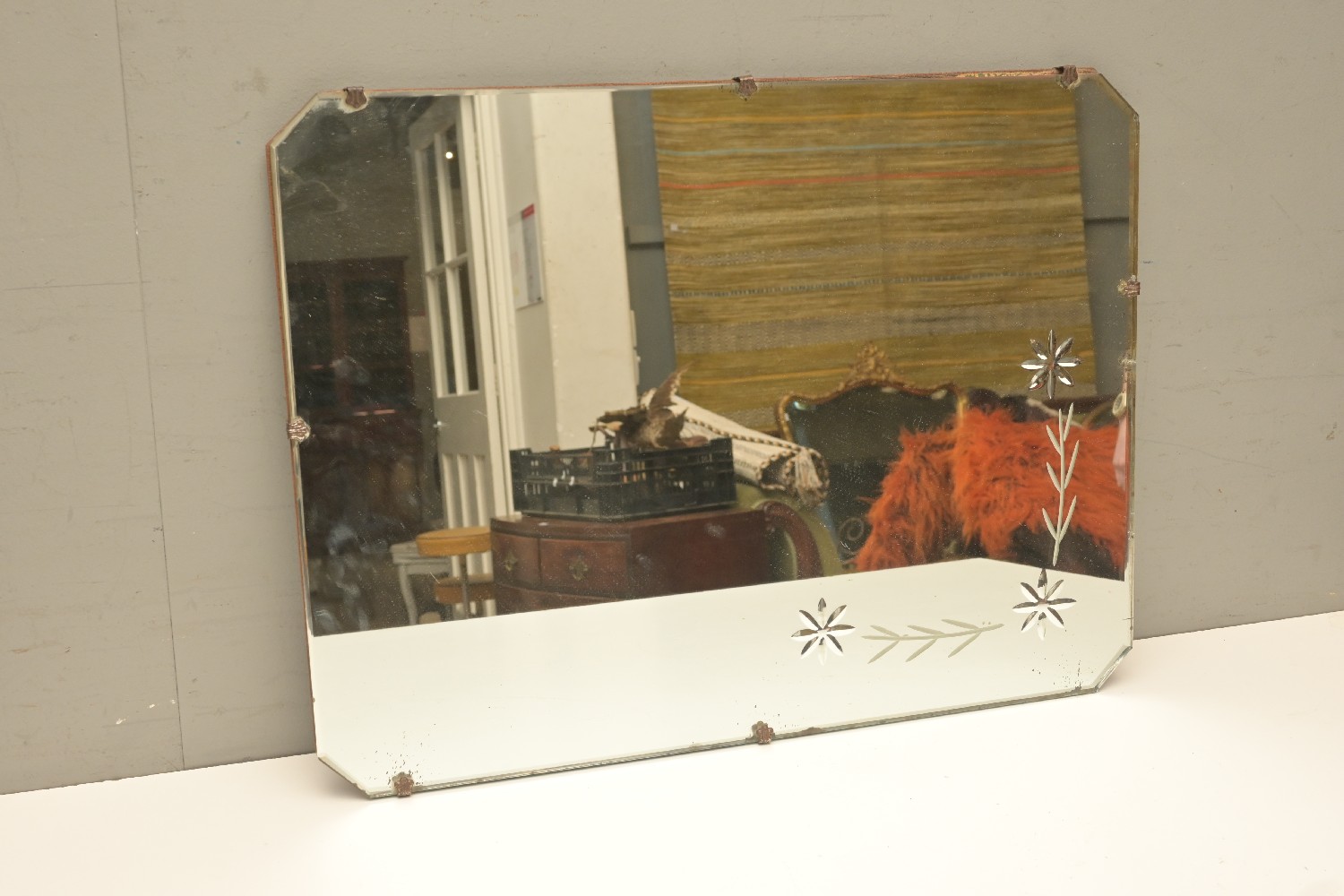 A MID-CENTURY BEVELLED MIRROR (46H X 61W CM) (LEONARD JOEL DELIVERY SIZE: MEDIUM)