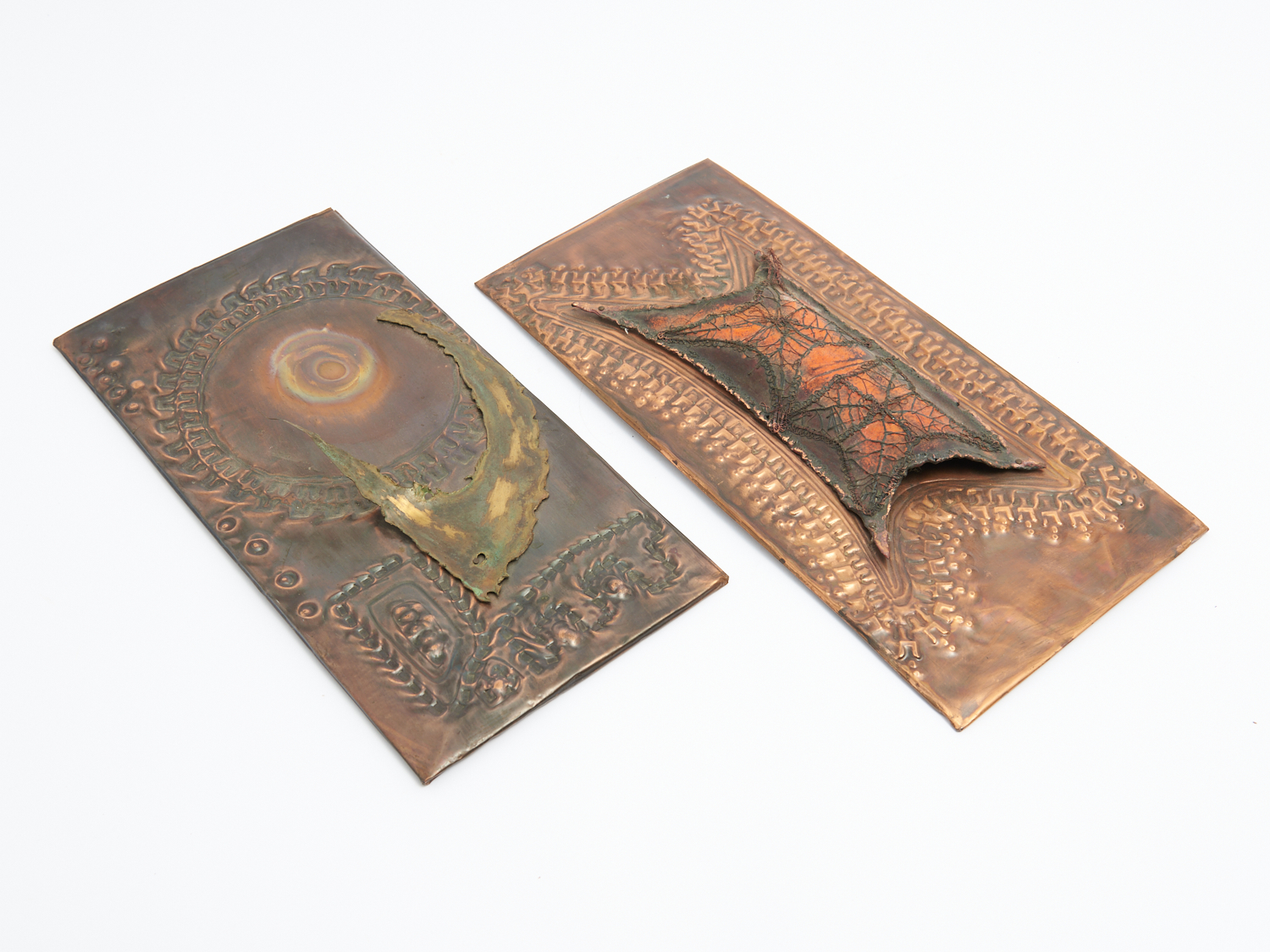 TWO VINTAGE COPPER AND ENAMEL WALL PLAQUES, ONE SIGNED LILLI BATHGATE 1973 H.39CM (TALLEST), LEONARD JOEL DELIVERY SIZE: MEDIUM