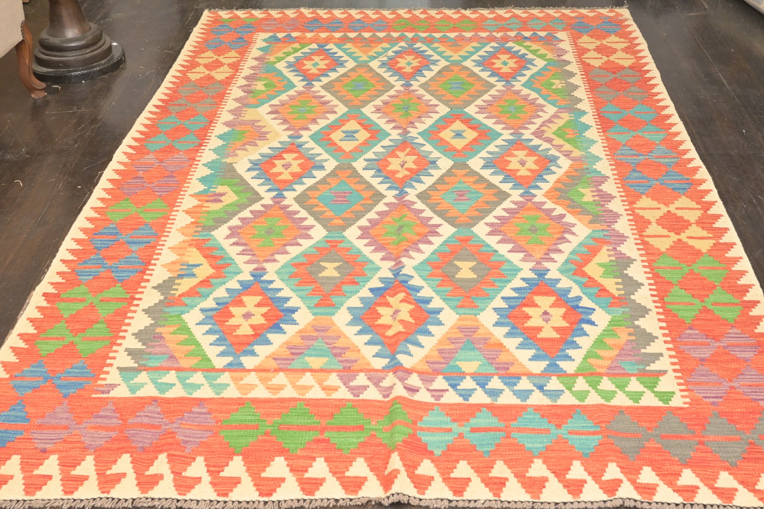 AN AFGHAN KAZAK KILIM RUG IN CAUCASIAN DESIGN, VEGETABLE DYES, 100% WOOL AND REVERSIBLE (299 X 199 CM) (LEONARD JOEL DELIVERY SIZE: LARGE)