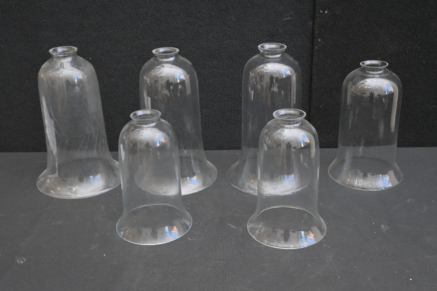 A COLLECTION OF GLASS STORM SHADES (A/F) (31H X 20DIA CM) (LEONARD JOEL DELIVERY SIZE: MEDIUM)