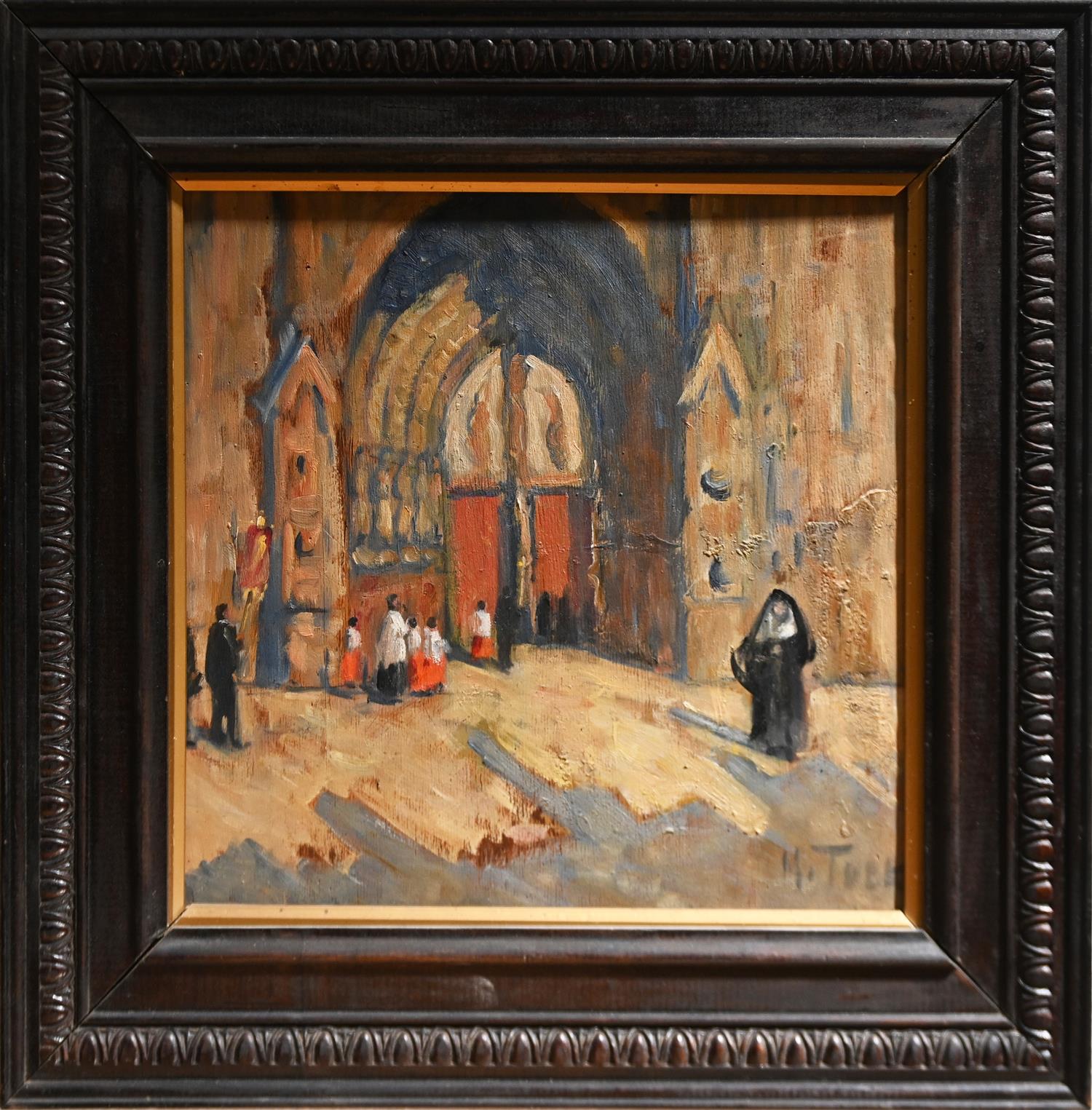 MARIE TUCK, CHURCH SCENE, OIL ON PANEL, SIGNED LOWER RIGHT, 27.5 X 30CM, FRAME SIZE: 42.5 X 45CM