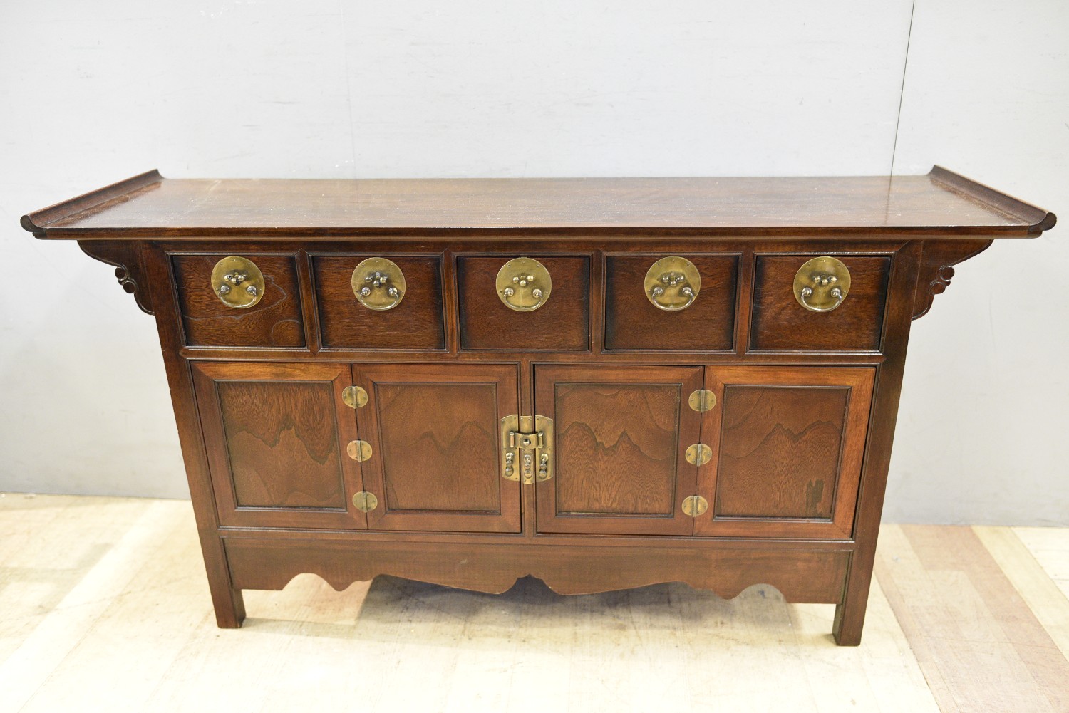 A CHINESE ELM SIDE CABINET (84H X 163W X 45D CM) (PLEASE NOTE THIS HEAVY ITEM MUST BE REMOVED BY CARRIERS AT THE CUSTOMER'S EXPENSE. LEONARD JOEL STAFF CANNOT ASSIST CARRYING THIS ITEM) (X-LARGE ITEM)