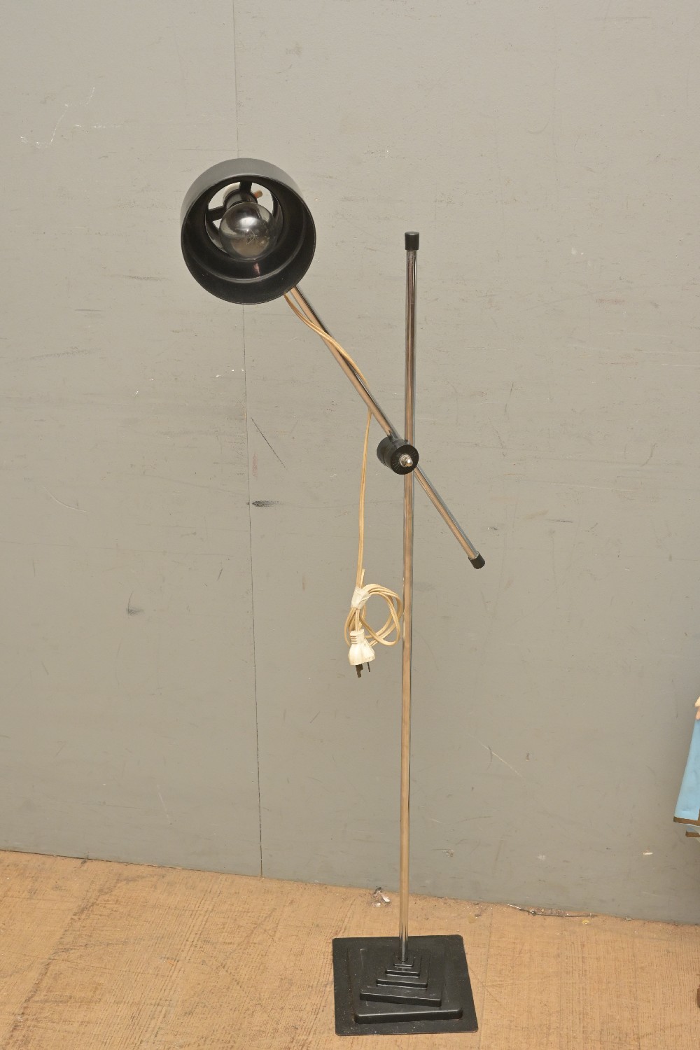 A RETRO CHROME AND BLACK METAL ADJUSTABLE STANDARD LAMP (115H CM) (LEONARD JOEL DELIVERY SIZE: LARGE)
