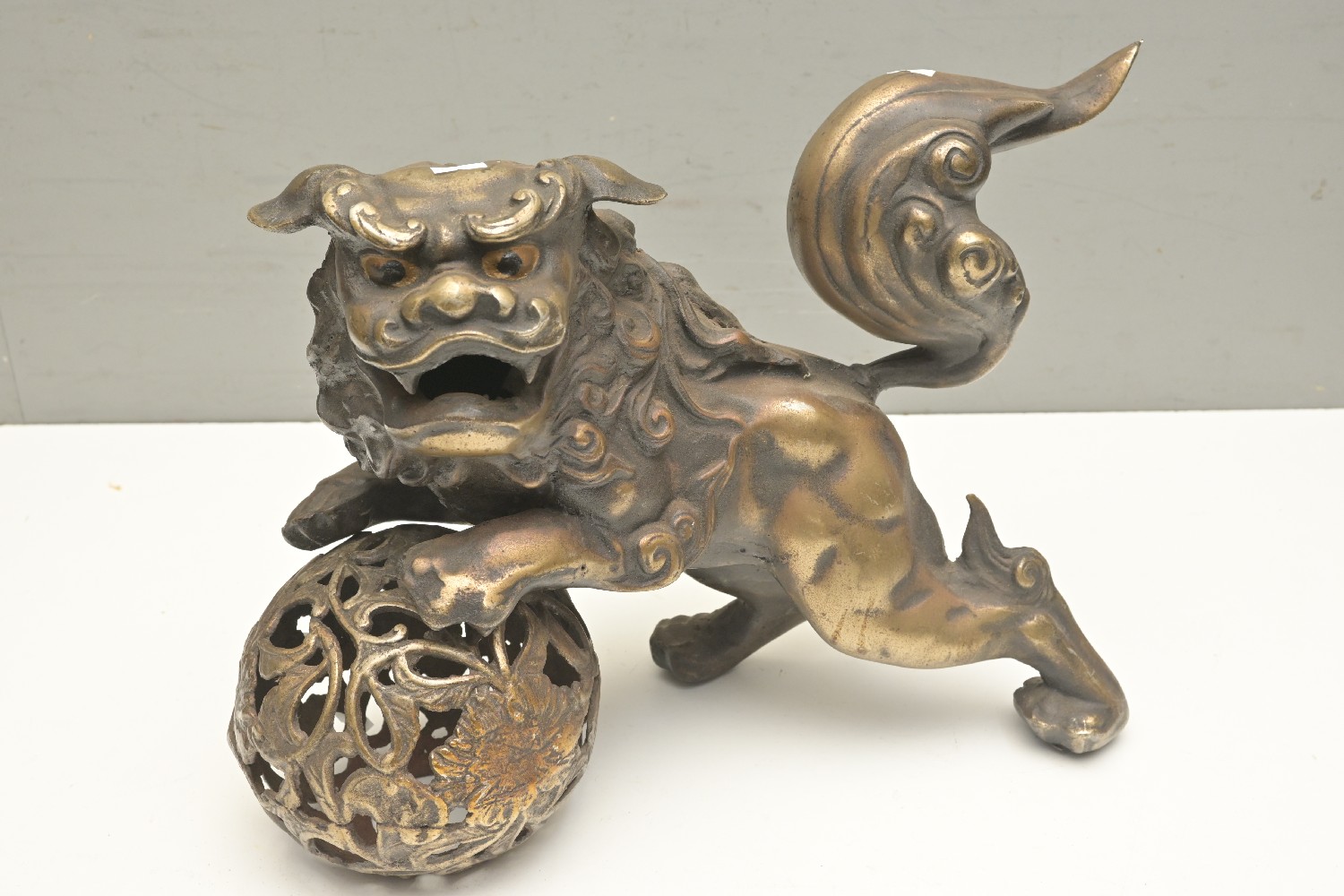 A CHINESE BRONZE FIGURE OF A GUARDIAN LION (A/F) (32H X 48W X 16D CM) (LEONARD JOEL DELIVERY SIZE: X-LARGE)