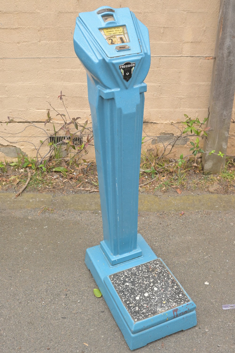 A SUBSTANTIAL VINTAGE CAST IRON 'PRECISION' SCALES (A/F) (123H X 32W X 57D CM) (THIS HEAVY ITEM MUST BE REMOVED BY CARRIERS AT THE CUSTOMER'S EXPENSE. LEONARD JOEL STAFF WILL NOT ASSIST CARRYING THIS ITEM) (X-LARGE ITEM)