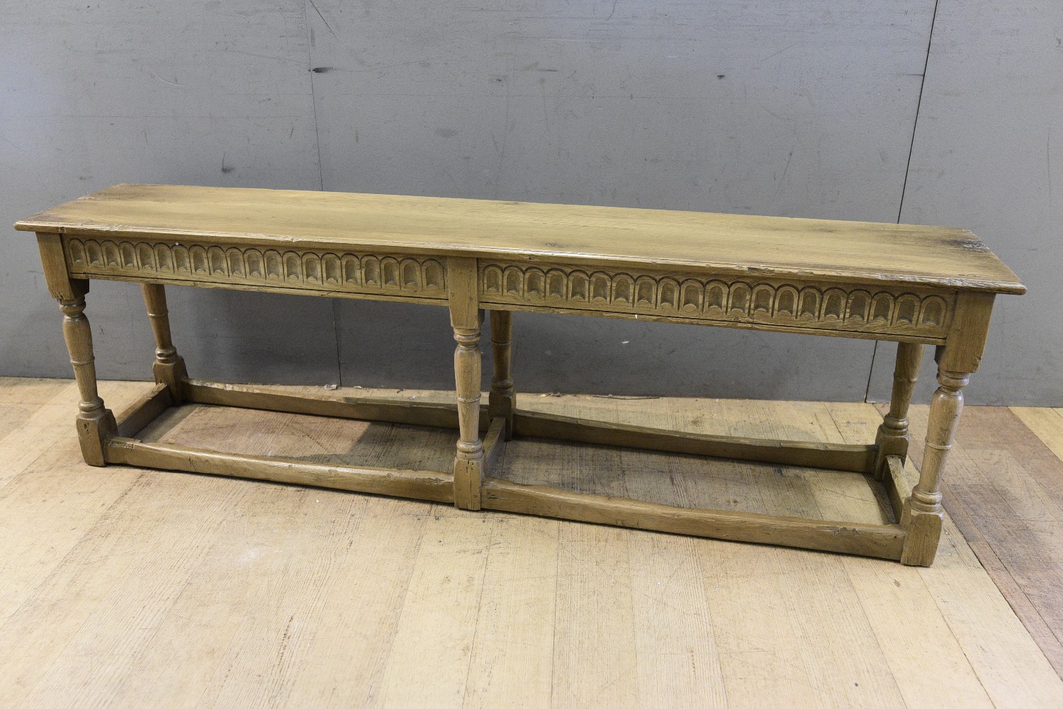A CHARLES II-STYLE OAK BENCH (45H X 150W X 29D CM) (LEONARD JOEL DELIVERY SIZE: X-LARGE)