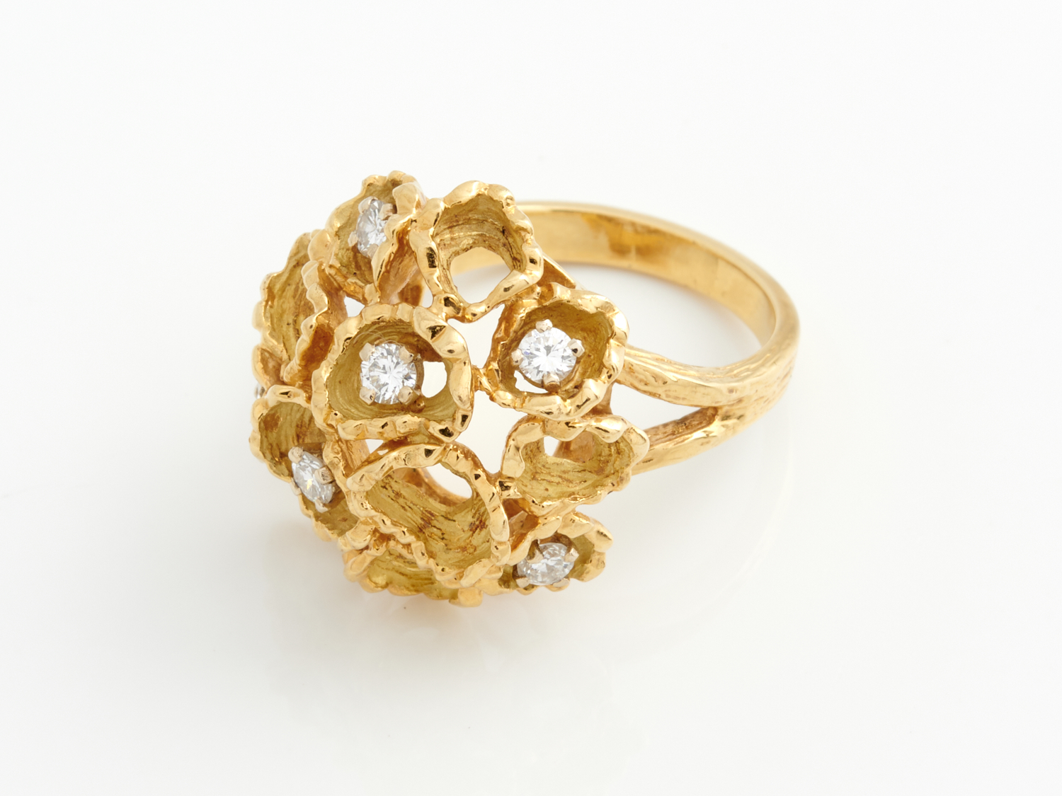 J. FARREN-PRICE, A DIAMOND SET RING IN 18CT GOLD, SIZE N, 10.76GMS, ACCOMPANIED WITH A BOX
