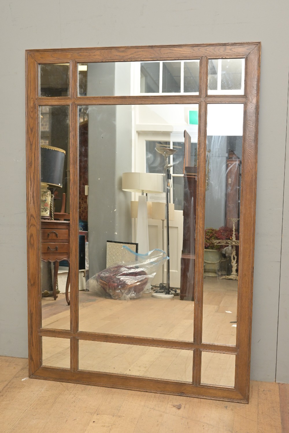 AN OAK-FRAMED MIRROR (171H X 116W CM) (THIS HEAVY ITEM MUST BE REMOVED BY CARRIERS AT THE CUSTOMER'S EXPENSE. LEONARD JOEL STAFF WILL NOT ASSIST CARRYING THIS ITEM) (LARGE ITEM)