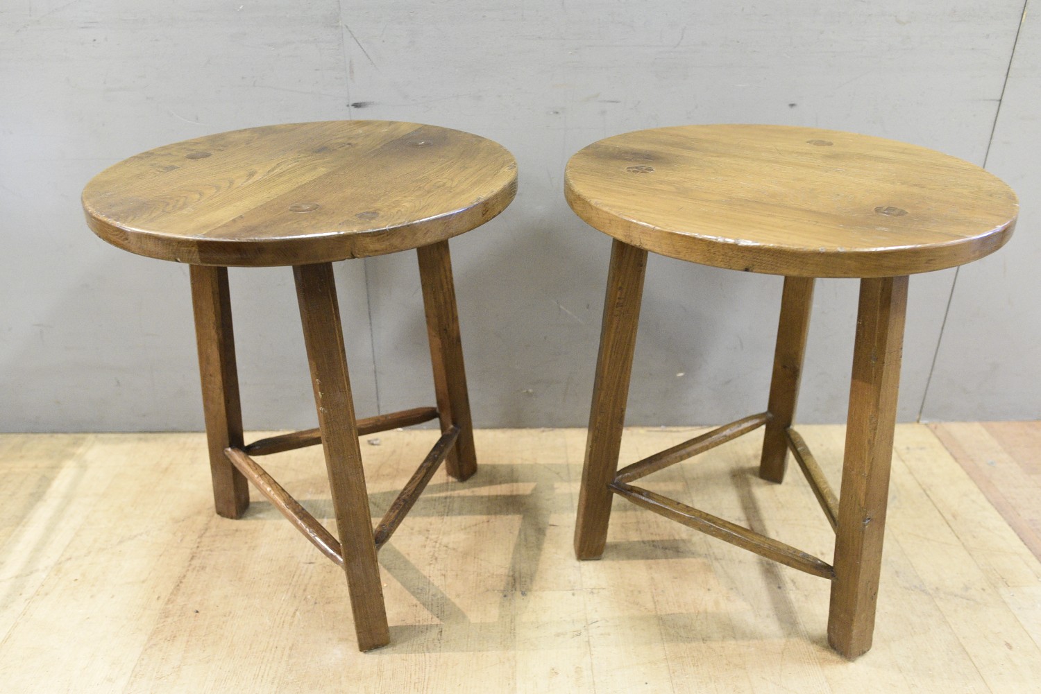 A PAIR OF RUSTIC STYLE OAK CRICKET TABLE (64H X 56D CM) (X-LARGE ITEM)
