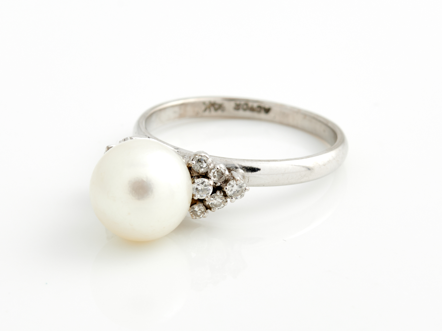 A DIAMOND AND PEARL RING IN 14CT WHITE GOLD, 3.51GM, SIZE M