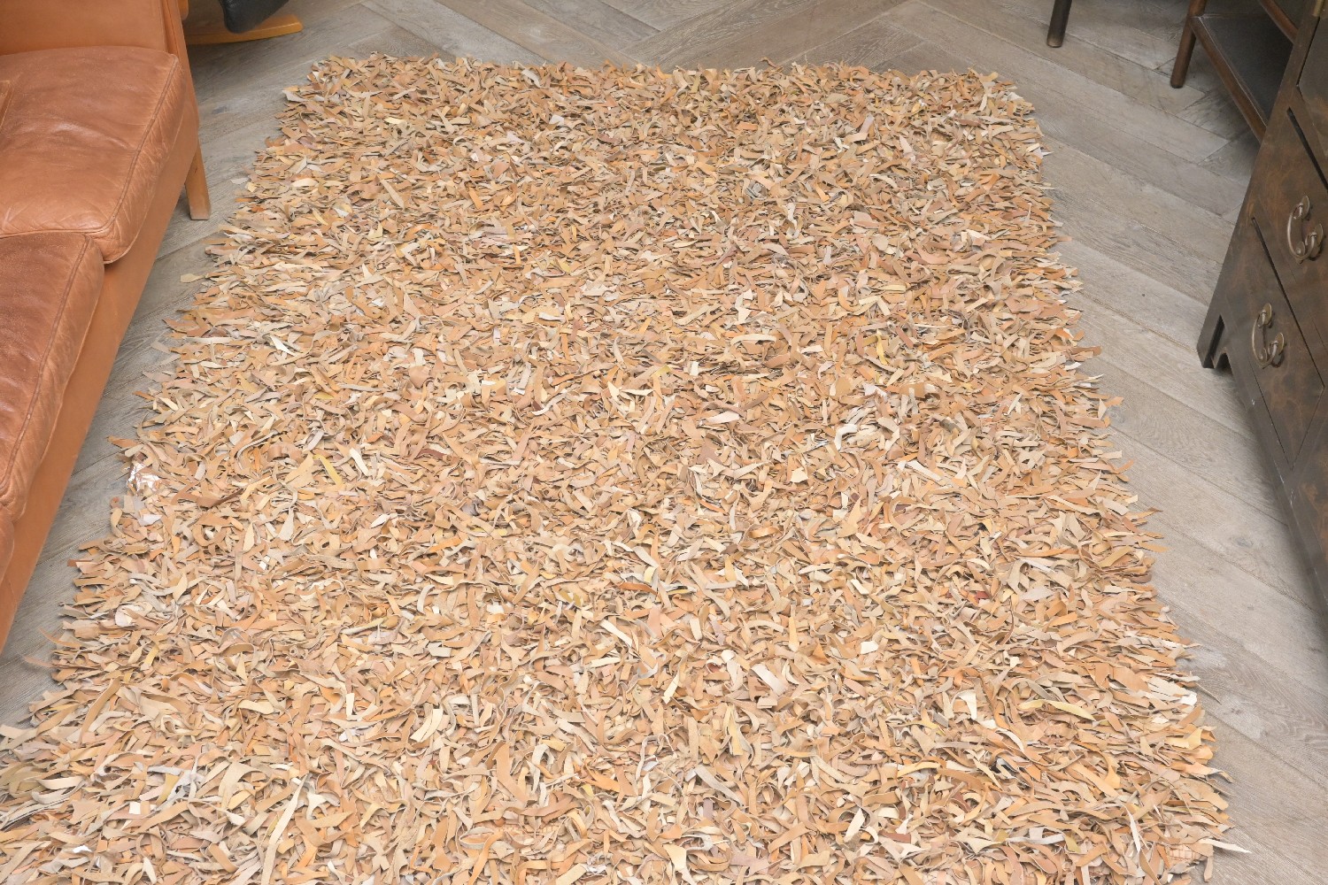 A LEATHER SHAG RUG (A/F) (222 X 160 CM) (LEONARD JOEL DELIVERY SIZE: LARGE)